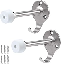 SPTwj 2 Butoirs de porte en acier inoxydable avec pare-chocs, Arrêt de Porte Avec crochet, Butoirs de Porte, stop-portes, pour Protéger la Porte et Mur - Argent