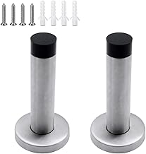 SPTwj 2 Butoirs de Porte en acier inoxydable avec pare-chocs, Arrêt de Porte 90.5mm Long, Butoirs de Porte, stop-portes, pour Protéger la Porte et Mur - Argent
