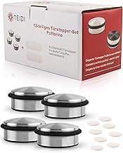 Butoirs de porte en acier inoxydable (4 x) avec pare-chocs autocollants (8 x) - pare-chocs lourds et plats pour le sol - pare-chocs souples en blanc pour le mur - (Lot de 12)