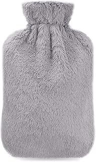 Bouillotte avec housse Polaire, Bouteille d'eau Chaude Bouillotte Peluche Bouillotte à Couvercle Polaire Bouillotte amovible et lavable, Aide à Fournir Chaleur et Confort (Grau)