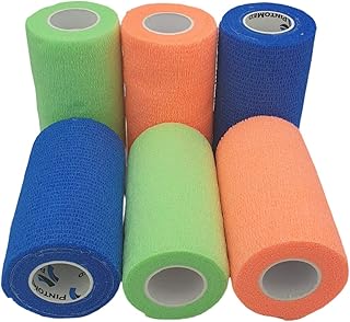 PintoMed - Bandage Cohésif -2 Bleu + 2 Orange Neon + 2 Vert Neon - 6 Rouleaux X 10 cm X 4.5 m Autoadhésif, Sports Bande, Premiers Secours Adhésif, Vet Wrap