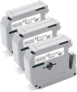 Exsun Ruban pour Étiqueteuse Compatible pour Brother M-K231S M-K231 12mm 0.47 Noir sur Blanc pour Brother PT-90 PT-80 PT-M95 PT-100 PT-55 PT-65 PT-70 PT-80 PT-85 PT-60, 12mm x 8m, Pack de 3