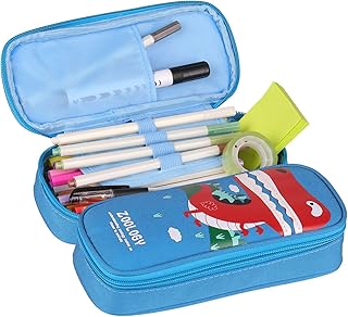 Grande Trousse Scolaire, Une Belle Trousse à Crayons de Grande Capacité avec Deux Compartimen, Grosse Kawaii Trousse Pochette Cosmétique pour Fille Garcon Ado Femme (Crocodile Bleu)
