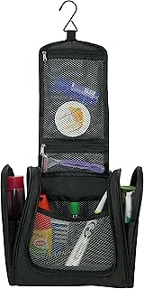 Trousse de toilette de voyage, trousse cosmétique portable à suspendre avec crochet. Grande trousse XL noire pour homme, femme, enfant, fille ou garçon, bébé.