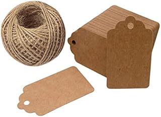Ogquaton 100 PCS Kraft Gift Tags Étiquettes de Mariage Cadeaux Artisanat et étiquettes de Prix avec 20 mètres Corde de Ficelle de Jute