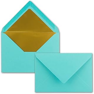 Lot de 25 enveloppes turquoise - Format DIN C6 - 114 x 162 mm - 11,4 x 16,2 cm - Fermeture humide - Surface mate et doublure métallique dorée - Sans fenêtre - Pour invitations