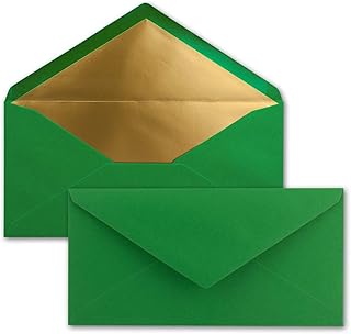 Paper24 Lot de 300 enveloppes format DIN long Vert sapin avec doublure intérieure métallique dorée 110 x 220 mm Fermeture humide