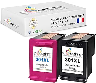 Comète Consommable - 2 Cartouches d'encre 301XL (CH563E + CH564E) - Compatible pour HP Deskjet 1000 1010 1050 1510 1512 2050 2050A 2510 2540 3050 ENVY 4500 4502 4503 5530 5532 Officejet 2620 2622 4630