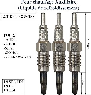 (Lot de 3) Bougie Réchauffeur liquide refroidissement Chauffage Auxiliaire Addtionnel A3 A4 A6 Galaxy Alhambra Ibiza Cordoba Leon Toledo Fabia Octavia Bora Golf Polo Beetle Passat Sharan 1,9 Tdi