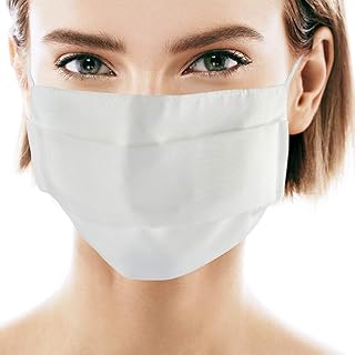Masque de Protection Visage Catégorie UNS1 Tissu Lavable 100% Coton Barrette Nasale, élastique réglable, Made in France, 3 couches Normes AFNOR par Lot de Deux Pièces (Blanc)
