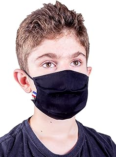 Masque Barrière de Protection Visage Catégorie 1 UNS1 Tissu Lavable Made in France, Normes AFNOR, 3 couches dont filtre, par Lot de Deux Pièces, Taille (S) enfants (Noir)