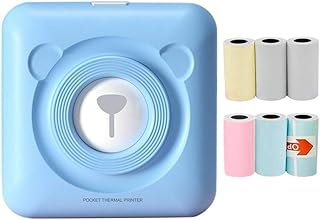 Mini Imprimante Photo Portable,Imprimante Thermique Étiquette d'image Memo Chat Reçus, Imprimante + 6 Rouleaux de Papier Thermique avec câble USB,Prise en Charge de Telephone Android iOS (A)