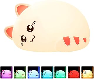 Veilleuse LED Kidoo LED Chat Veilleuse Silicone Veilleuse de Bébé Portable Enfant Veilleuse avec 7 Couleurs de Nuit Lampe de Chevet USB Rechargeable Veilleuse (blanc A)