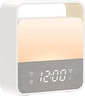 Veilleuse Enfant LED, Veilleuse Réveil Bébé USB Rechargeable Lampe Nuit 12 Couleurs RGB Lampe de Chevet Portable Veilleuse Enfant lumière d'atmosphère avec Réveil et Horloge